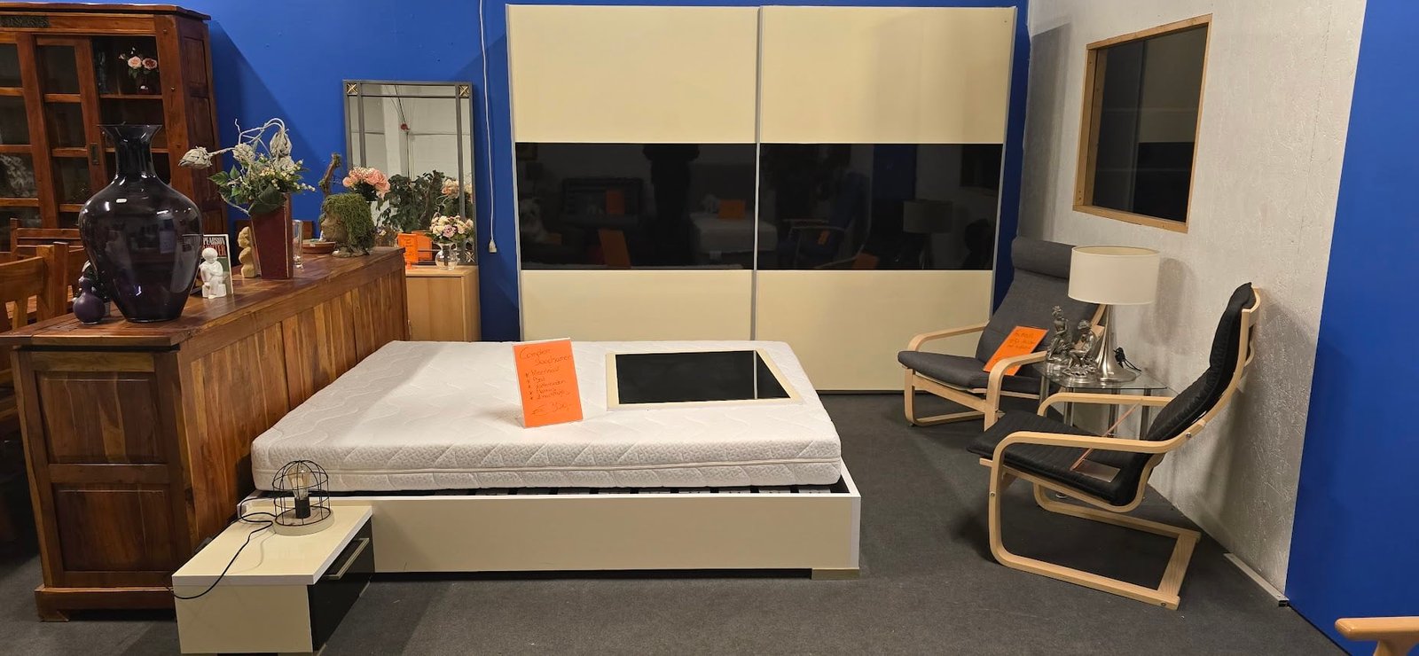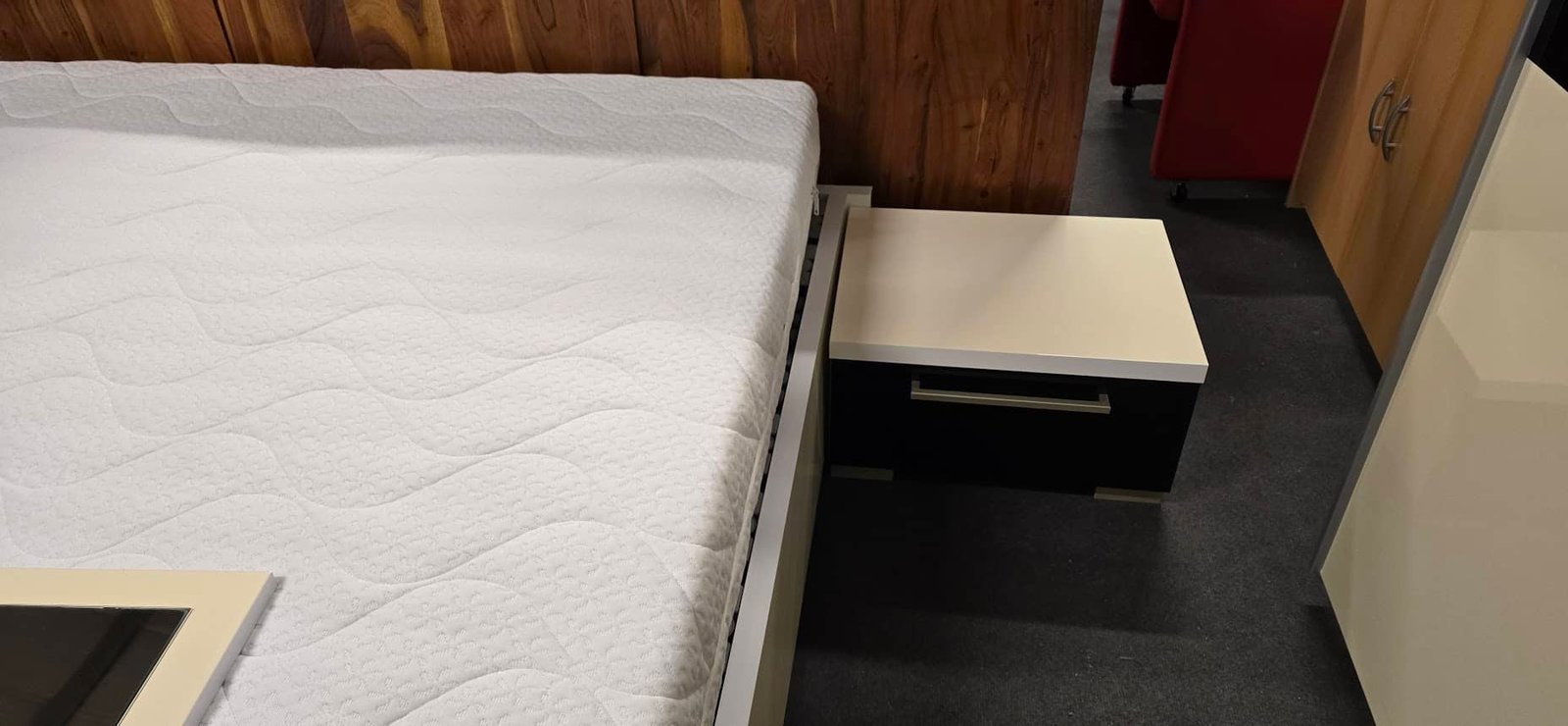 Een praktische en verzorgde slaapkamercombinatie die meteen rust en samenhang brengt in de ruimte.