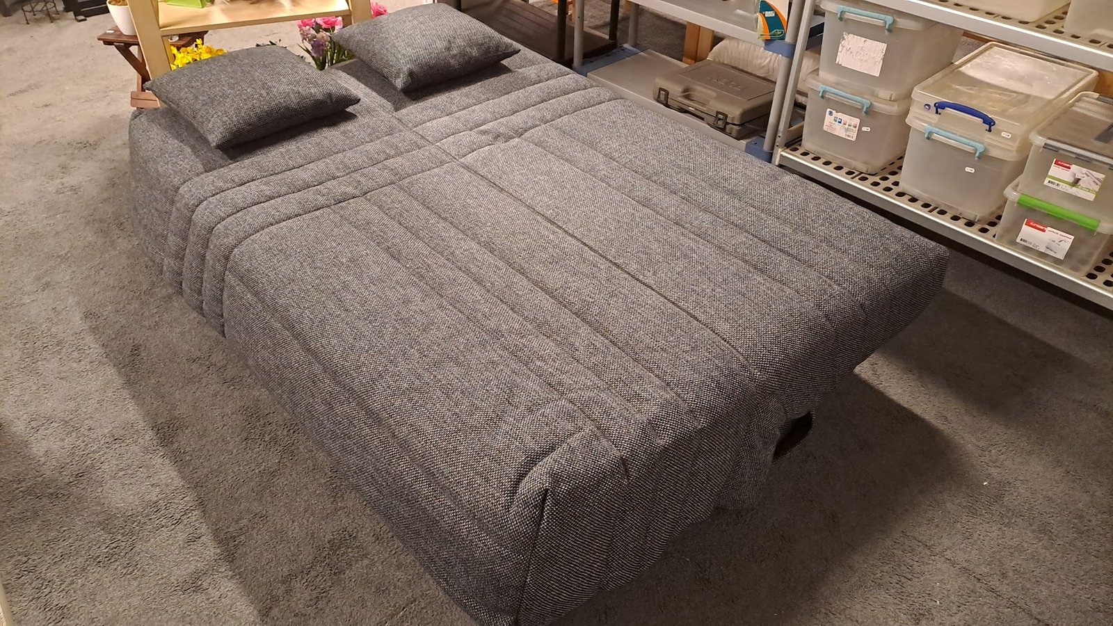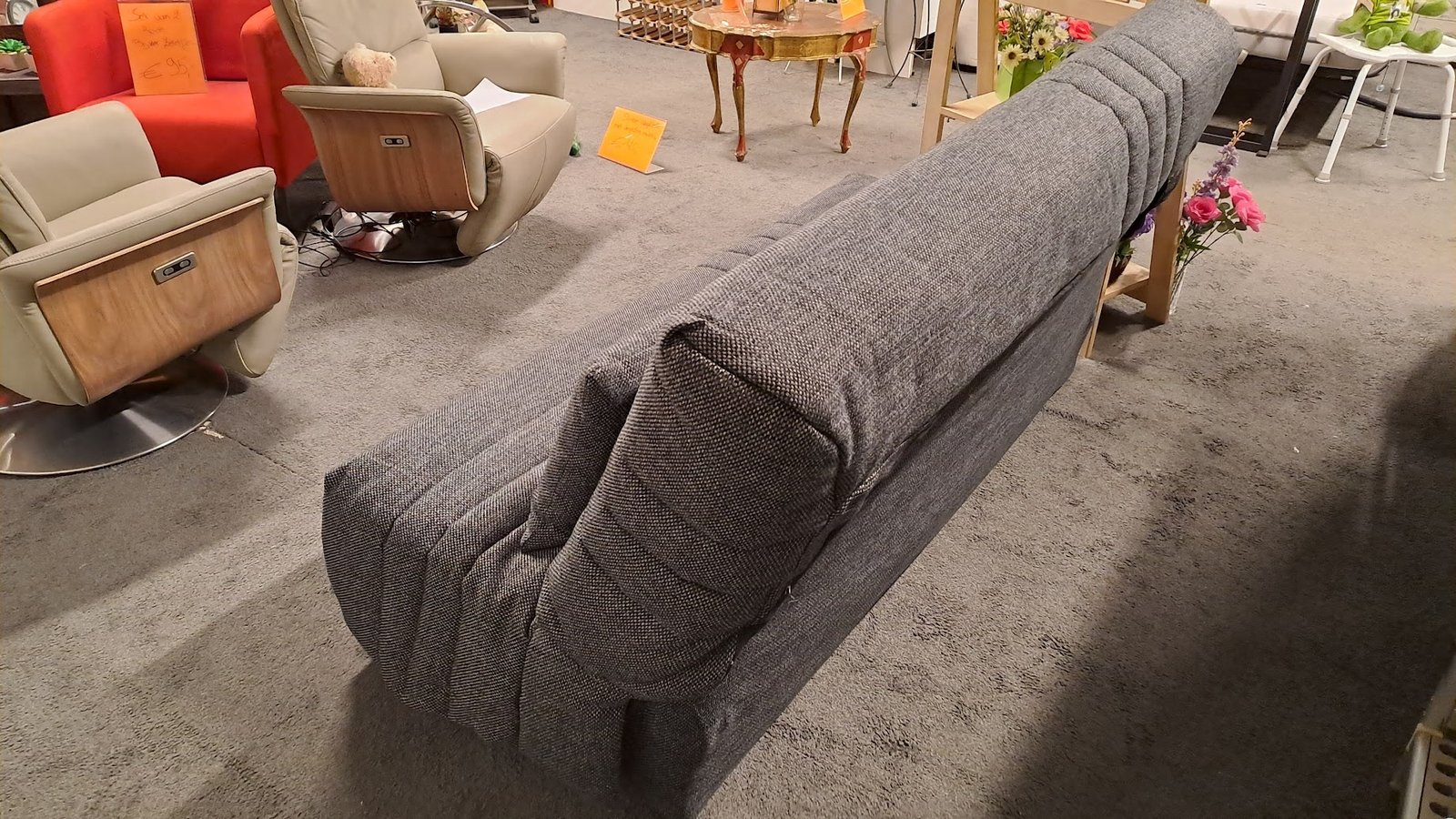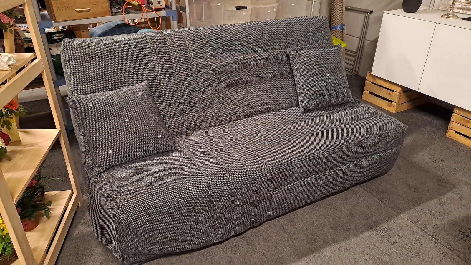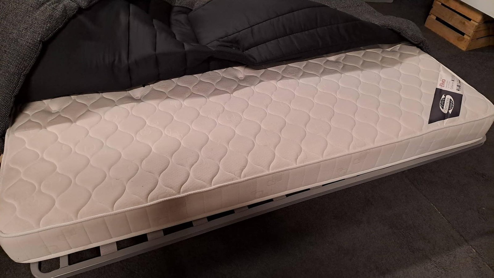 Grijze slaapbank met matras combineert comfortabel zitten met een volwaardige slaapfunctie. Overdag een nette zetel, ’s nachts eenvoudig om te vormen tot een bed met een degelijke, vaste matras.