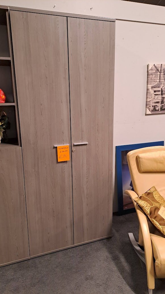 Deze slanke en hoge opbergkast biedt veel praktische bergruimte achter twee deuren. Ideaal voor kantoor, berging, slaapkamer of hobbyruimte.
