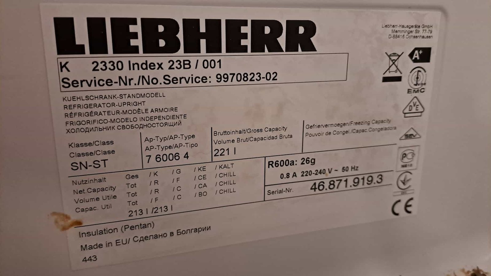 Koelkast Liebherr A+ – 221 liter