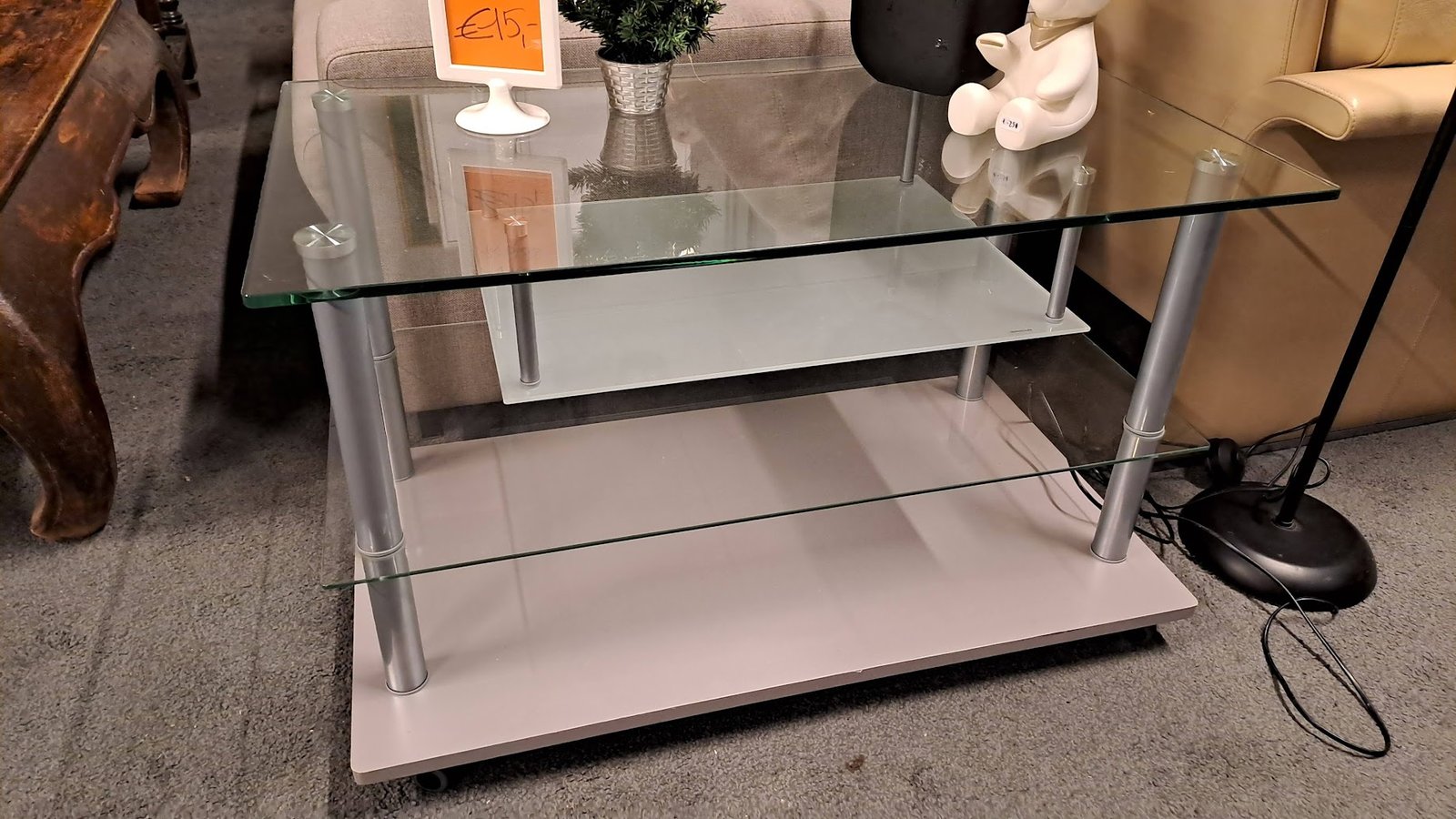 Modern glazen tv meubel is een strak en tijdloos meubel dat perfect past in een moderne woonkamer. De combinatie van glazen legplanken en metalen poten zorgt voor een lichte uitstraling zonder aan stevigheid in te boeten.