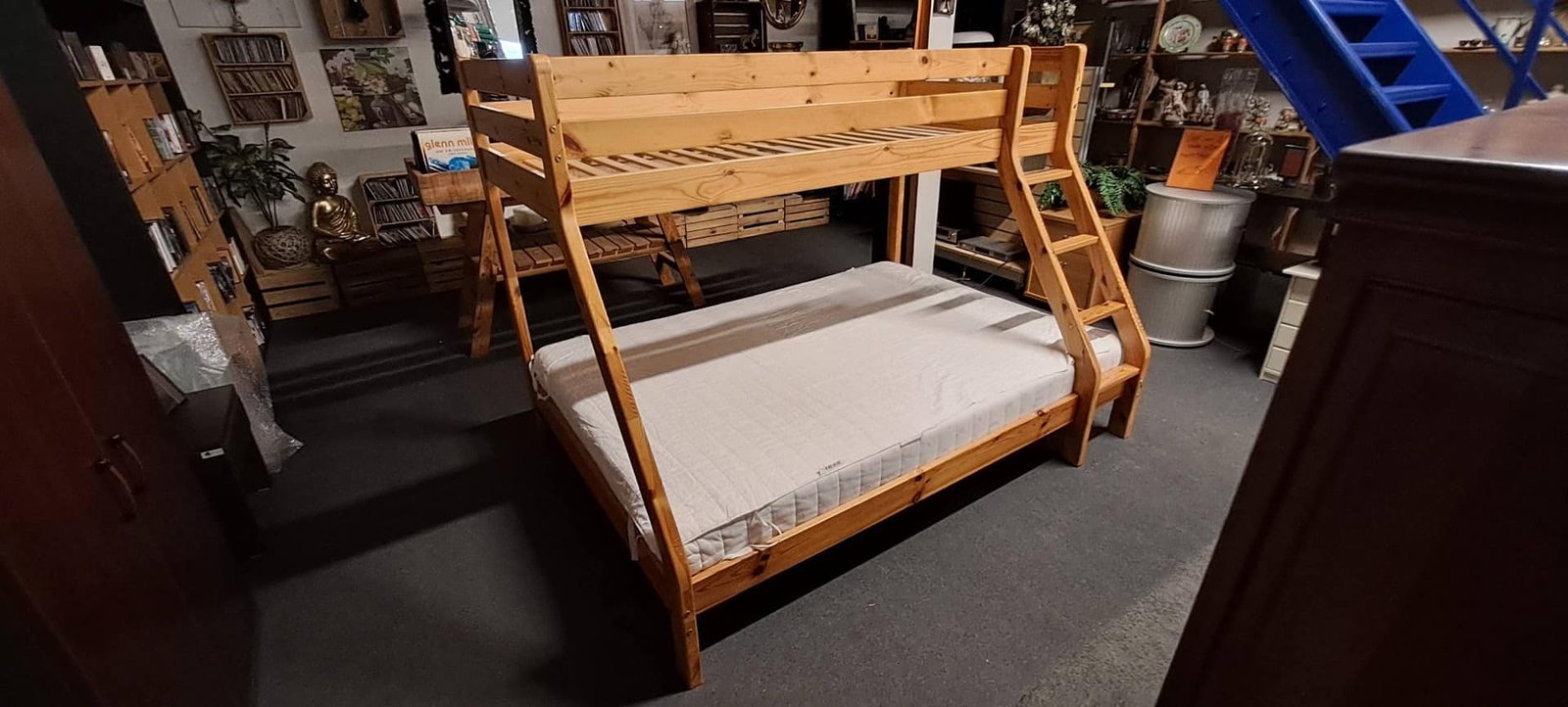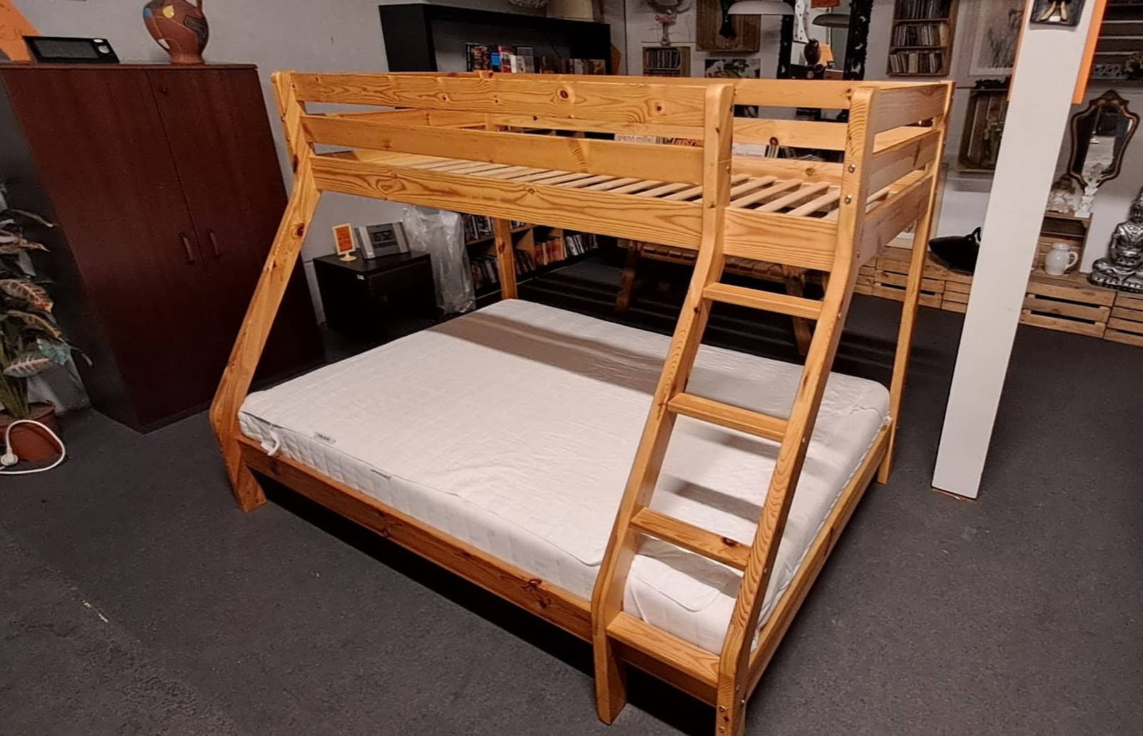 Dit stevige stapelbed biedt een comfortabele slaapplaats voor drie personen en is ideaal voor logeerkamers, vakantieverblijven of gezinskamers met beperkte ruimte.