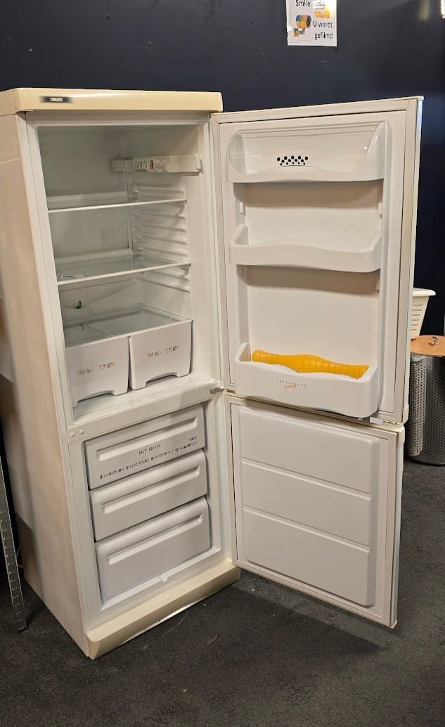 Zanussi combi koelkast diepvries in degelijke, werkende staat. Deze praktische koel-vriescombinatie biedt voldoende ruimte voor dagelijkse boodschappen en is ideaal voor wie een betrouwbare koelkast zoekt zonder poespas. Het toestel is iets ouder, maar stevig gebouwd en nog perfect bruikbaar voor keuken, bijkeuken, garage of tweede verblijf.