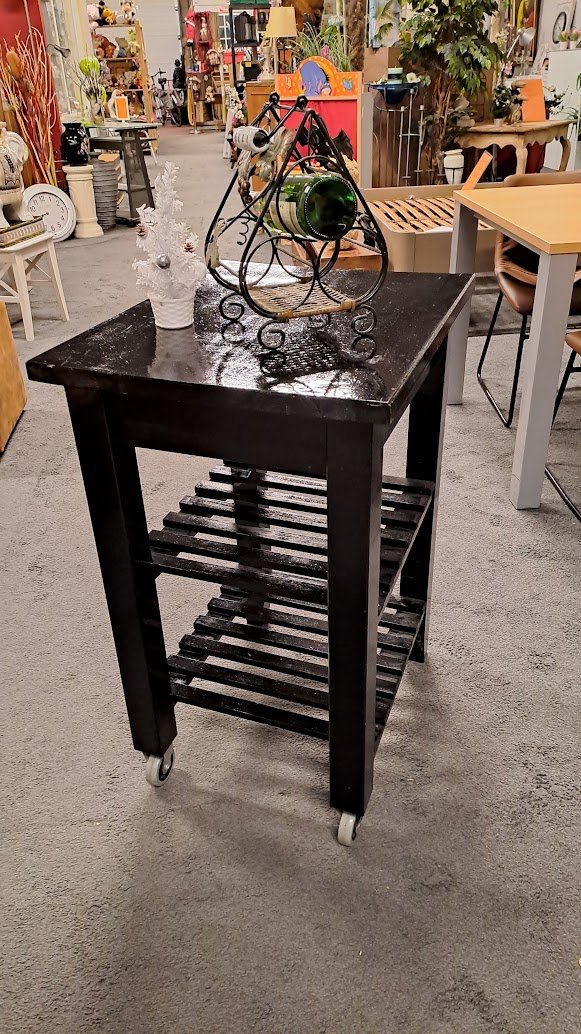 Zwarte keukentrolley met 2 wielen is een praktische en stijlvolle hulp in de keuken, eetruimte of bijzetruimte. Dankzij het compacte formaat en de twee wielen verplaats je deze trolley eenvoudig naar waar je hem nodig hebt.